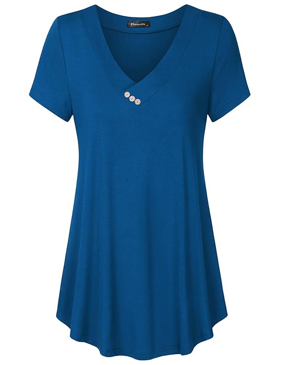 Vinmatto Women's Short Sleeve V Neck Flowy Tunic Top