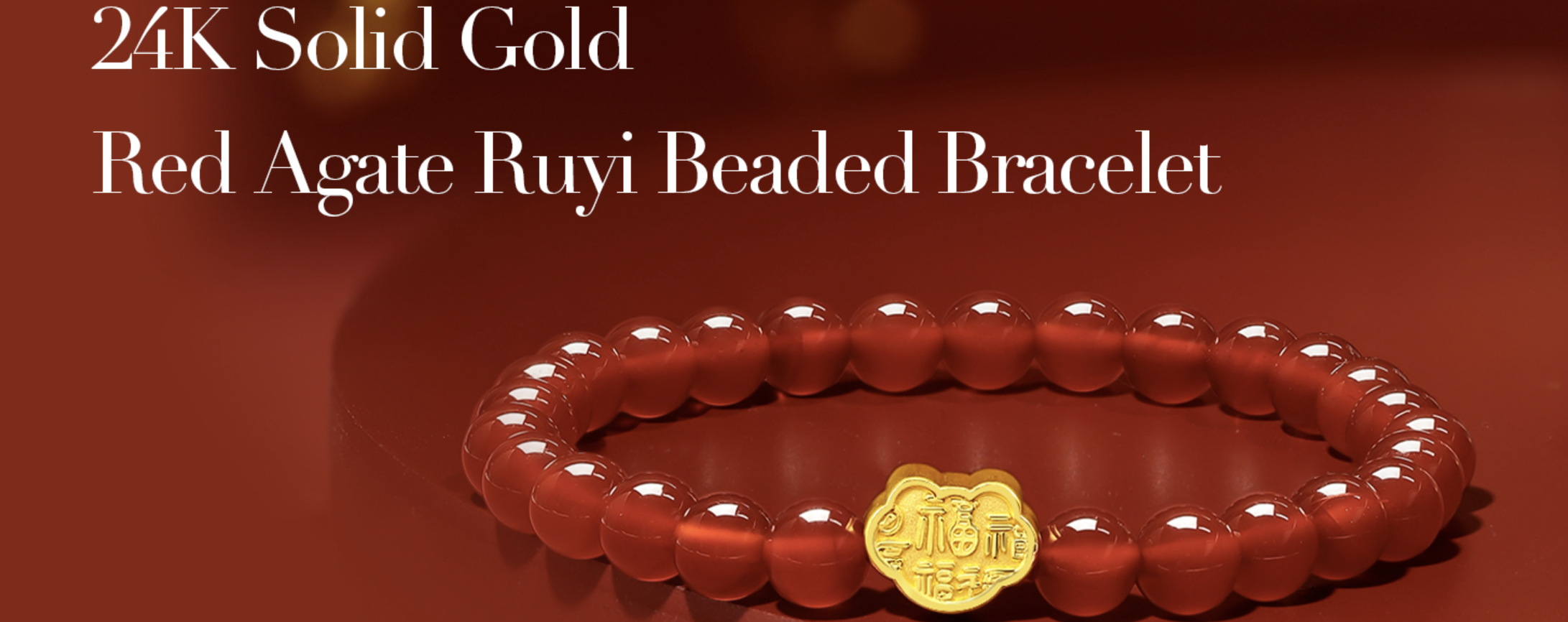 24K纯金材质配玛瑙串珠手链。这款弹力手链由直径6-6.5毫米的圆形玛瑙珠手工串制而成,佩戴舒适,外观精美,非常适合日常佩戴。