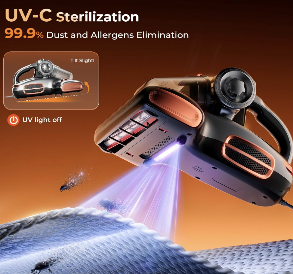 紫外线消毒,深度清洁床垫,不伤织物,99.9% 有效过滤,专为过敏患者设计