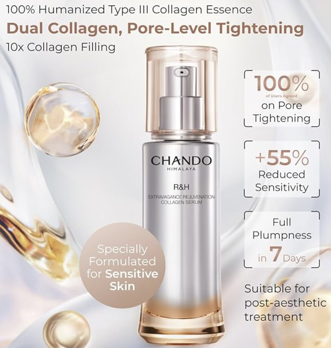 CHANDO HIMALAYA自然堂,奢华焕颜胶原蛋白精,抗衰老面部保湿精华