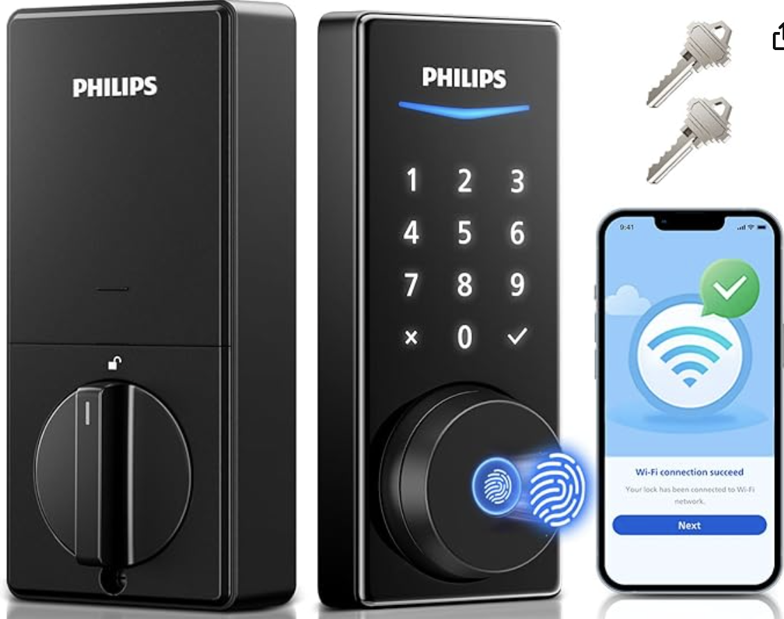 内置 Wi-Fi,远程控制:飞利浦智能锁内置 Wi-Fi,让您无需额外网关,即可使用智能手机随时随地控制智能锁。管理 PIN 码、用户访问权限,并接收实时锁定/解锁通知,让您始终掌控一切。