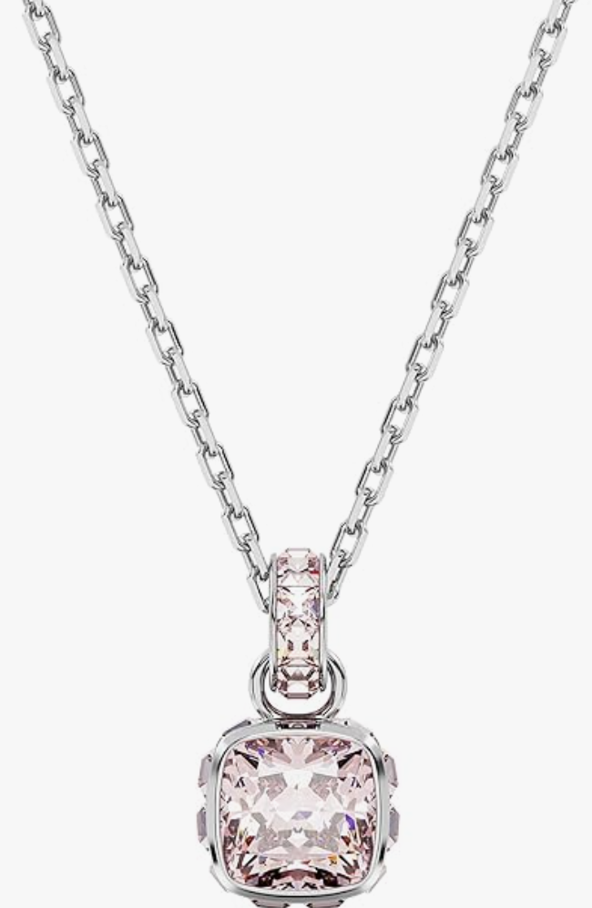 这款施华洛世奇六月生辰石吊坠项链的设计灵感源自六月,镶嵌一颗方形切割的珍珠粉色宝石,为您的颈部线条增添优雅气质。