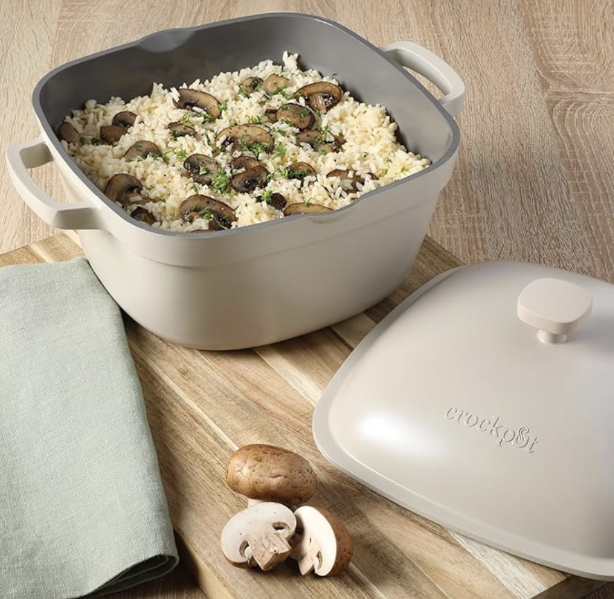 这款来自慢炖锅经典品牌的5.2夸脱铸铝荷兰锅,采用轻量耐用的铸铝材质,提供均匀的加热效果。其特殊的方形锅身设计可容纳更多食材,适合烹煮家庭分量的炖菜和汤品。锅体四角圆润,可作为倾倒口,方便转移食物或多余油脂。内部为健康的陶瓷不粘涂层,不含PFOA、PTFE等化学物质,易于清洁。坚固的双把手设计便于烹饪和端取,且兼容包括电磁炉在内的多种灶具。