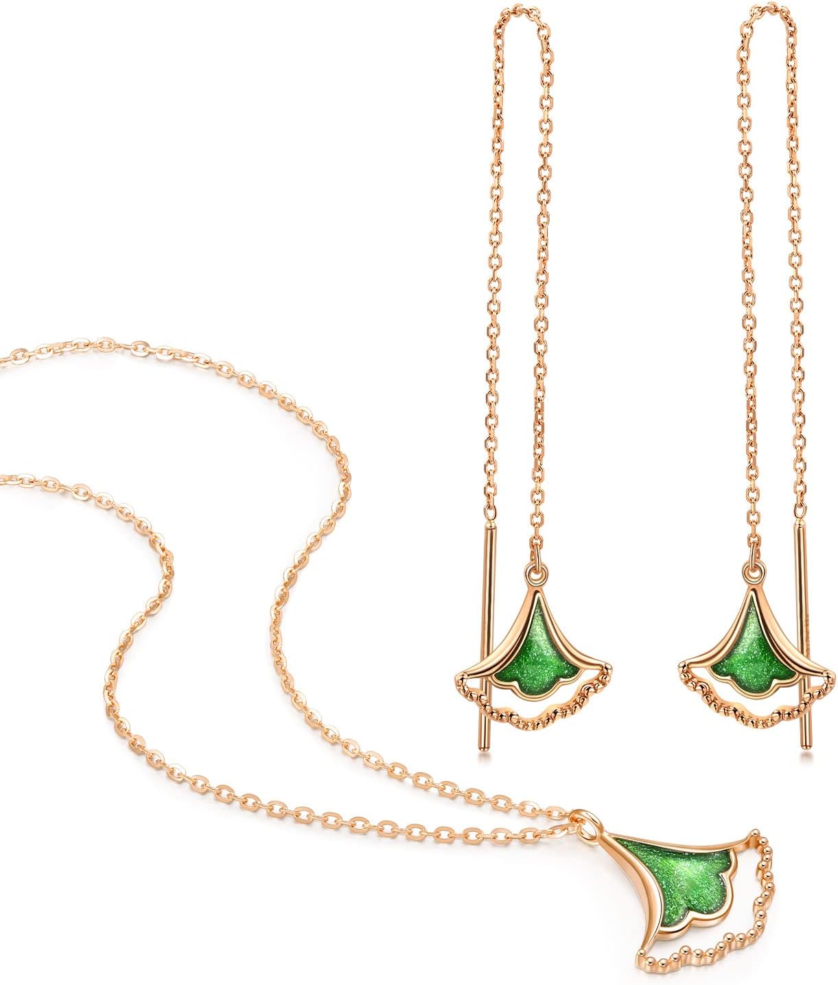 🍂绿色珐琅 + 玫瑰金银杏叶, 限量版项链+耳环套装,这一套真的很特别! 颜色搭配非常高级,既清新又带一点轻奢感。而且还是 限量版设计,整体很有收藏感。 ✔ 清新又高级 ✔ 成套佩戴很有整体感 ✔ 非常适合自带或送礼