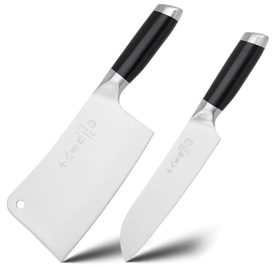 专业刀具套装 —— 这套厨房刀具包含两把锋利无比的刀具:一把斩骨刀和一把主厨刀。无论您是切肉、切菜、切碎香草,还是处理水果,这套刀具中的每一把都经过精心设计,能够轻松胜任各类烹饪任务。它是专业厨师和家庭烹饪爱好者的理想之选。