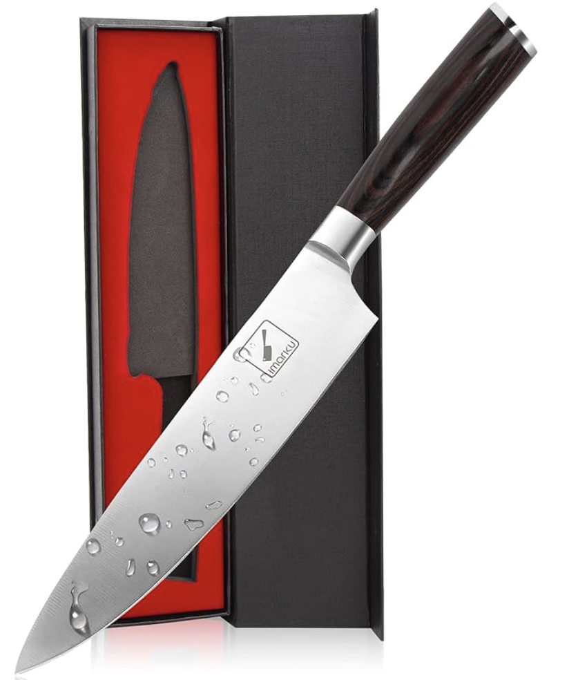 高碳不锈钢刀刃:刀刃采用优质不锈钢精制而成,能够长期保持卓越的使用性能。为了进一步提升其坚固耐用性,钢材中特别添加了0.6%至0.75%的碳元素。这一配方使其硬度达到了同类刀具的两倍——相比之下,同类普通刀具的含碳量通常仅为0.3%左右。