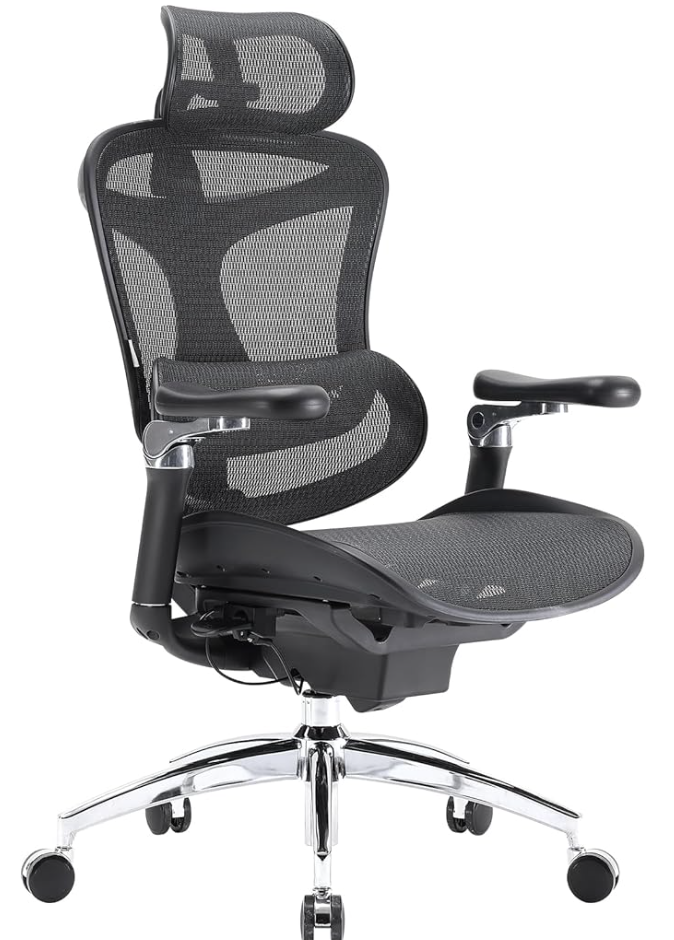 【人体工学办公椅】—— 这款人体工学椅提供4个支撑点(头部、背部、臀部及双臂),并提供恰当的腰部支撑。SIHOO 致力于设计能够满足不同用户需求的人体工学椅,具备座椅高度、头枕、腰托及靠背的多重调节功能,非常适合长时间久坐,有助于缓解身体酸痛。推荐身高在 5英尺6英寸至 6英尺2英寸(约168cm至188cm)之间的用户使用。