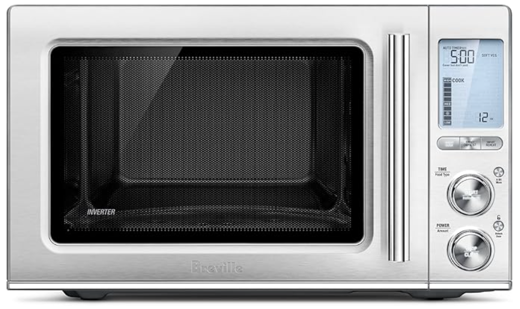 这是一款高端台面微波炉,配备中型烹饪室。它配备了旋钮和更大的 LED 屏幕。它有 7 种功率设置,它拥有丰富的控制和功能,包括传感器烹饪程序和静音选项。它还可以兼作空气炸锅和烤箱。