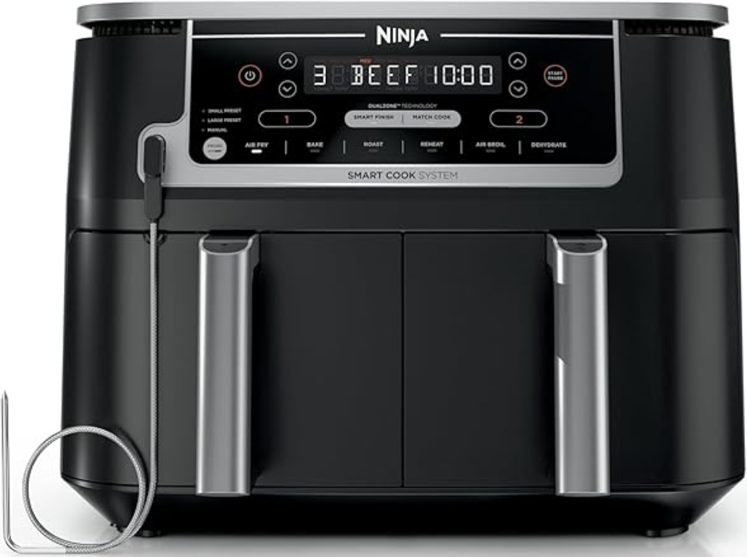 功能强大,烹饪速度更快。这款烤箱空气炸锅组合的功率为 1800 瓦,烘烤速度提高 28%,能耗减少 60%。*空气在食物周围强力循环,实现快速均匀烹饪。您可以在 20 分钟之内做好一整顿饭。多功能 — 10 种烹饪方式。这款多功能空气炸锅烤箱上直观的数字控制面板可让您选择 10 种烹饪方式。它甚至会记住您上次的烹饪功能调整。空气炸、烘烤、烤、烤、脱水等。快速空气炸食物:通过空气炸模式和 4 个空气炸预设,您可以快速均匀地将所有喜爱的食物煎成棕色。空气炸锅非常适合烹饪炸薯条、炸鸡、鸡翅、牛排、蔬菜等,几乎不用油甚至不用油。在您的台面上烹饪任何食物:空气炸锅烤箱可容纳 12 英寸披萨、最多 3 磅的鸡翅或 6 片吐司。它有足够的空间容纳您所有的烹饪必需品,从早餐百吉饼和下午茶点到全家餐。包括配件:空气炸锅烤箱有 2 个机架位置,包括一个金属网篮,甚至可以进行空气炸锅、烤盘、篮子安装在上部烤箱架上,下面是烤盘/烤架以接住滴水。