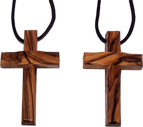 Olive Wood Cross Pendent Necklace Leather Cord Made in Bethlehem Set of 2
