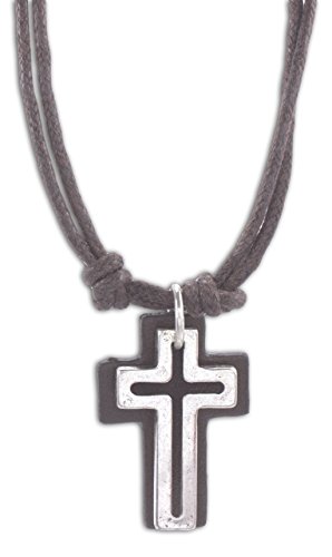 Cruz Accessories Open Cross with Leather Back on Double 16" Cord Vintage Look Necklace