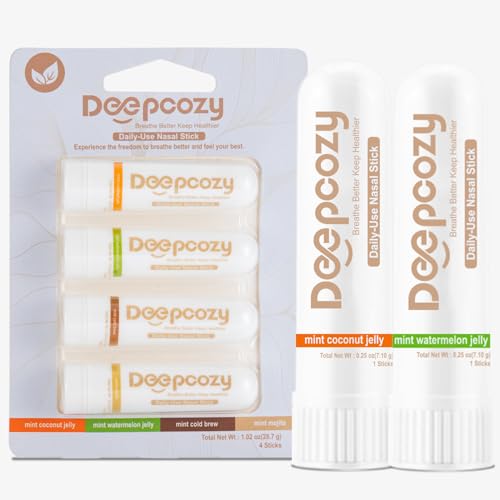 DeepCozy Nasal Stick for Adults, 4 Pack Nasal Inhaler Stick for Distraction Relief & Mild Stress, Portable Nasal Sticks Nose Inhaler Stick with Menthol (Coconut, Watermelon, Cold-Brew, Mojito)