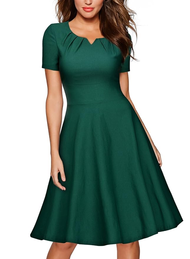 MissMay Women's Retro 1950s Short Sleeve A-Line Cocktail Party Swing Dress