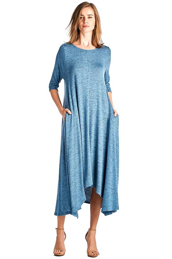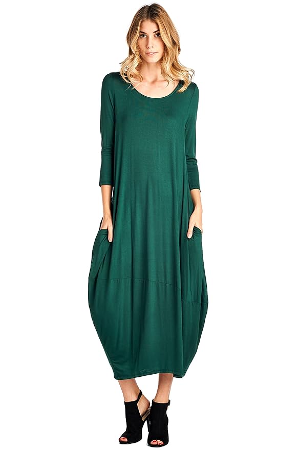 3/4 Sleeve Bubble Hem Pocket Midi Dress