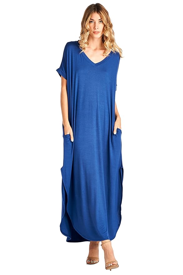 V-Neck Pocket Loose Maxi Dress - Made in USA