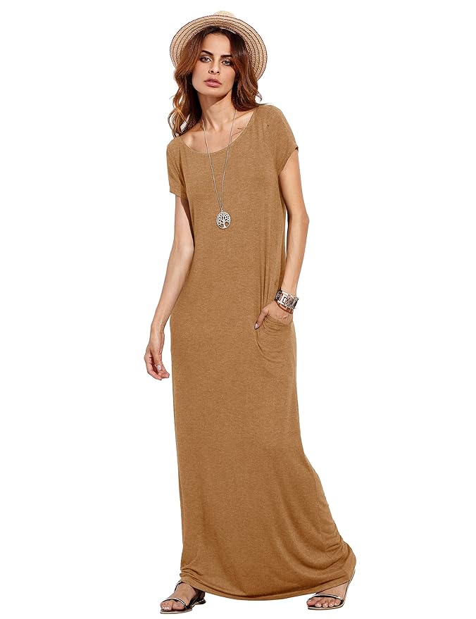 Short Sleeve Loose Casual Plain Long Maxi Dress