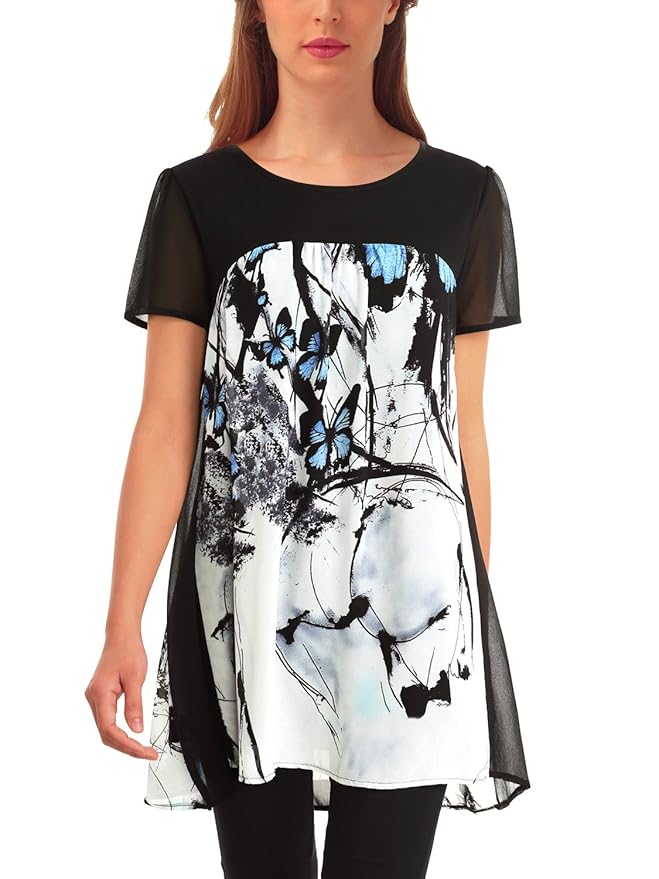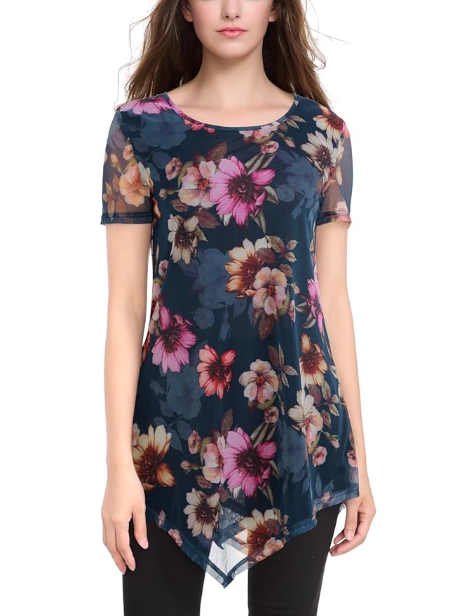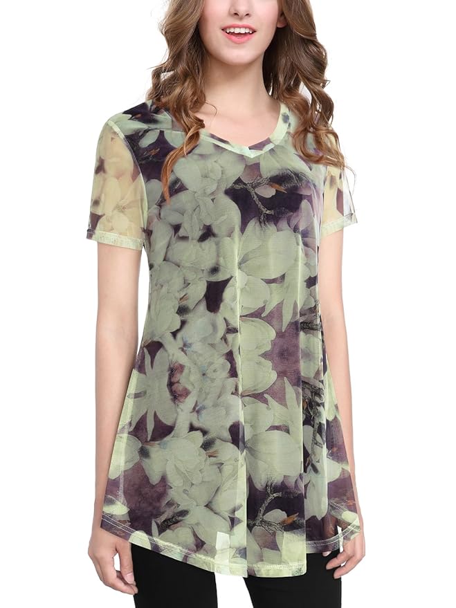 BAISHENGGT Women's Mesh With Lining Irregular Hemline Flared Tunic Top