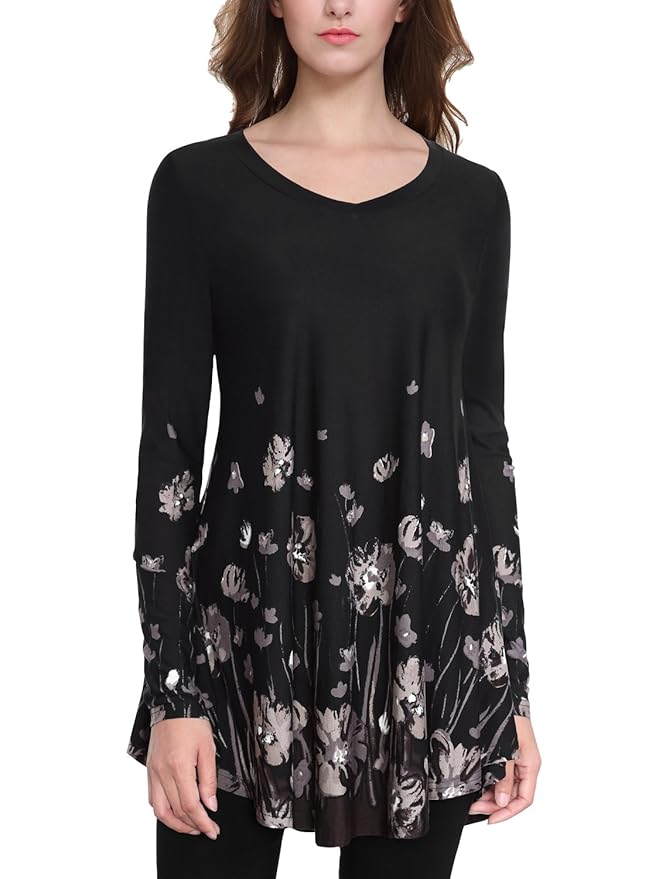 BAISHENGGT Women's Long Sleeve Flared Tunic Top