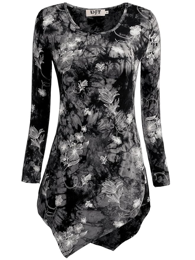 DJT Womens Tie Dyed Hankerchief Hemline Tunic Top