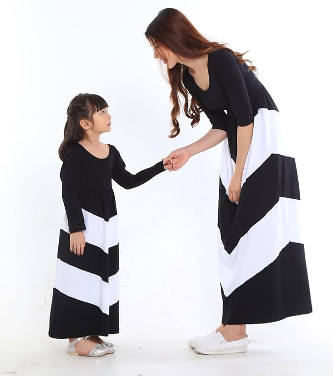 $11.8 Wennikids Cotton Material Mommy and Me Chevron Maxi Dress