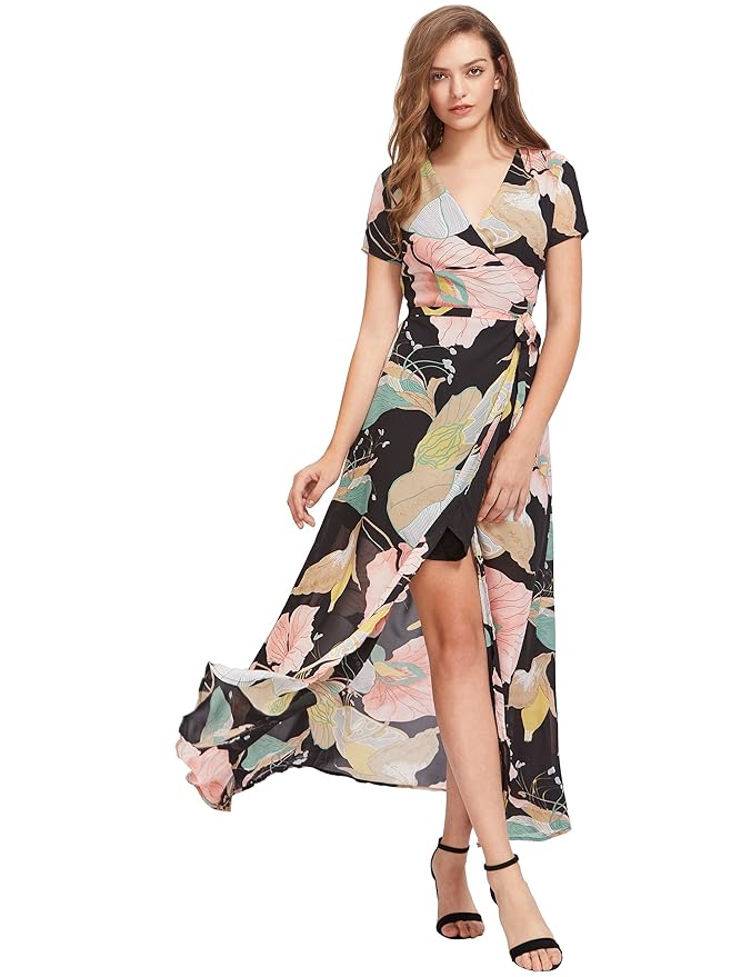 Milumia Women's Vintage Floral Print Split Wrap Maxi Dress