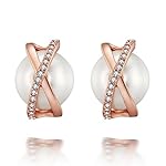 Rose Gold Plated Cubic Zirconia and Pearl Criss Cross Stud Earrings