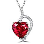 Caperci Sterling Silver Diamond Accent Created Gemstone Heart Pendant Necklace