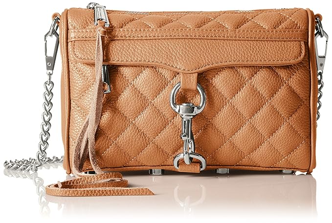 A classic Rebecca Minkoff bag rendered in supple leather. Polished spring lock at the front pocket. Zip closure and lined, single-pocket interior. Optional woven cross-body strap.