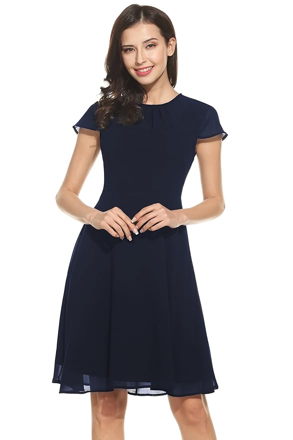 $24.99 $29.99 Zeagoo Women Cap Sleeve Keyhole Back Fit and Flare Cocktail Party Chiffon Dress