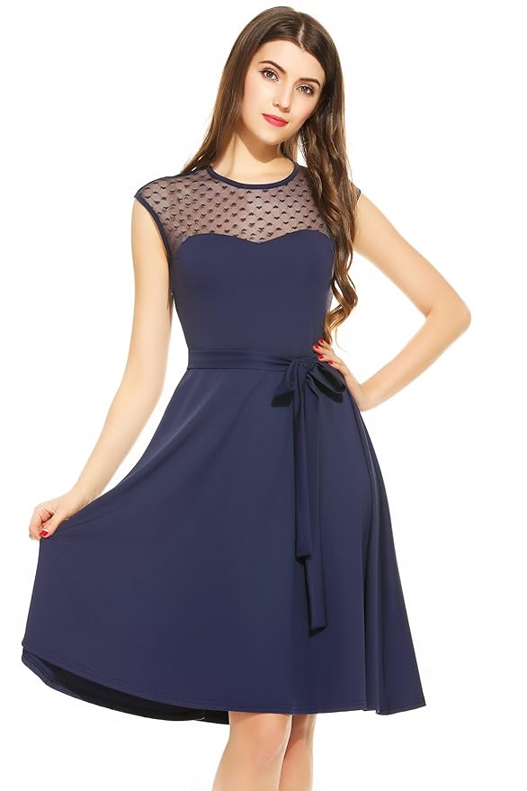 $18.50 $27.99 Zeagoo Women's A-Line Mesh Sleeveless Pleated Empire Waist Party Dress with Belt