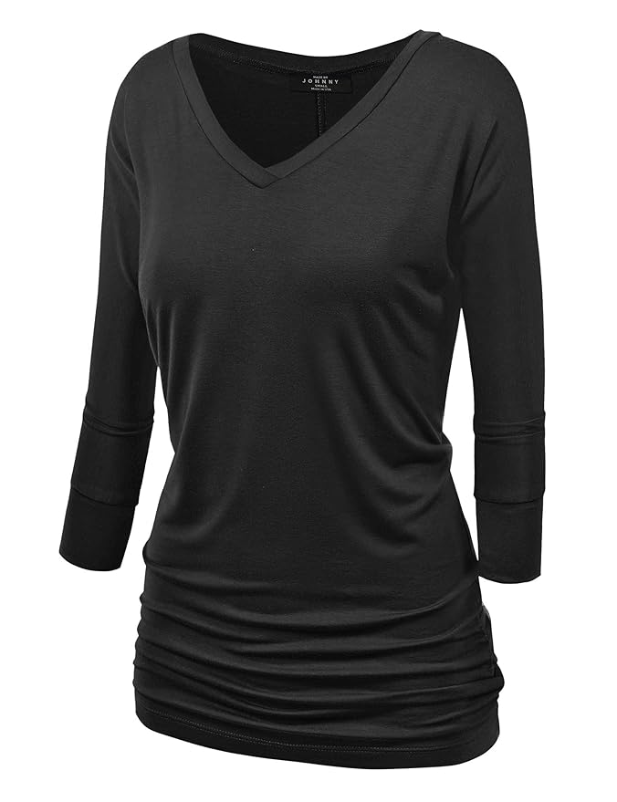 Ribbed on sleeves and neckline / Double stitching on bottom hem