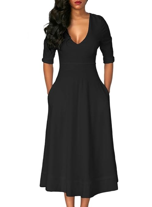 $19.99 $19.99 Happy Sailed Women V Neck Half Sleeves Flare Casual Slim Midi Dresses