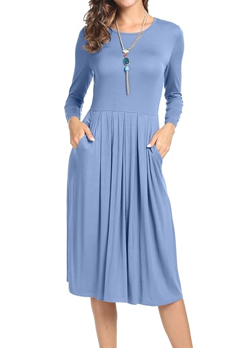 $14.99 $17.99 Levaca Women's Scoop Neck Pleated Loose Swing Casual Midi Dress With Pocket