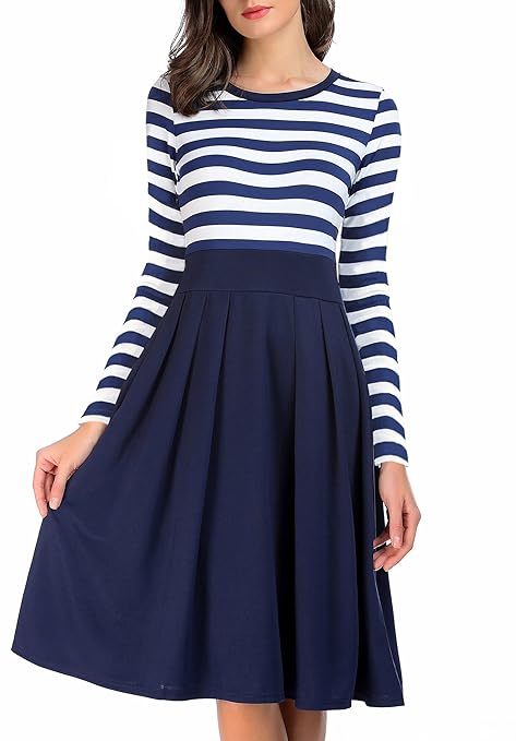 $19.99 $32 AAMILIFE Stripe Scoop Neck Short 3/4 Long Sleeve Vintage Womens Swing Dresses