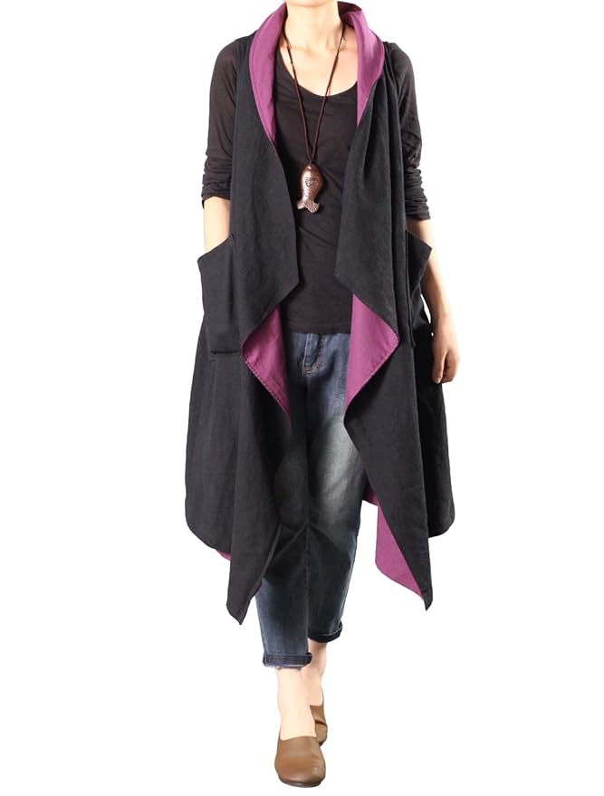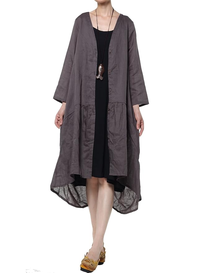 3/4 sleeve for plaid pattern, and long sleeve for solid color.Open front, waterfall asymmetric hem, soft material,light weight wrap design