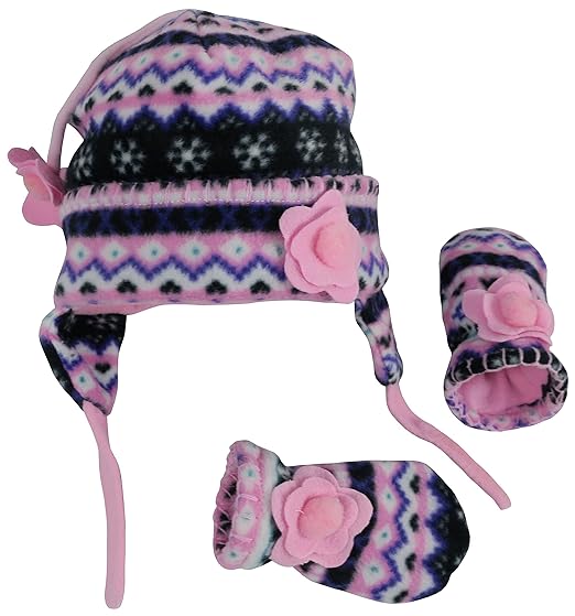 N'Ice Caps Little Girls and Baby Fair Isle Fleece Hat and Mittens Set