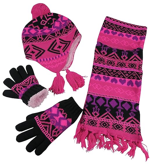 N'Ice Caps Big Girls Sherpa Lined Printed Hat/Scarf/Glove Knitted Accessory Set