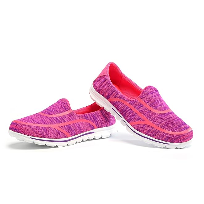 ❤ Flyknit and Seamless Upper/Vamp: Flyknit technology of performance shoes has created better plying-up, wrapping and air permeability by professional yarns. 3D and high-intensity breathable mesh fits the feet as closely as the second layer of human skins. Cozy lining on all sides and multiaspect venting system make shoes refreshing inside, keep your feet soft and non-muggy at any moment, and bring a strong and breathable summery flavor.❤ Lightweight and Comfortable Way to Enjoy Walking Pleasures: Comfort and lightness are basic principles which we are always persisting firmly in. Our near-perfect casual walking shoes are lightweight just like bubbles or feathers floating on the wind to make you forget about the shoes. Every step is so wonderful, stress-free and fascinating that you can't help bouncing about. Let's put on VIGSHOENIA women shoes and keep stepping forward in the same of youth and love.❤ EVA Foamed Shoe Sole: As a light-footed, soft, elastic and wear proof material, EVA has remarkable buffering effects on avoiding sudden stops and reducing the burden of feet. High resiliency shock absorption technology is used for the sneakers to disperse impact forces at every step, protect human skeleton and joints, make sensitive feedback to the ground, and enjoy the landing feeling of stability, balance and easiness.❤ Streamline Design For Women Foot Shapes: Each pair of women walking shoes fits your feet with a cocoon-like wrapping feeling and provides a greater sense of stability and comfort for the forefoot and toes. Crashproof toe cap avoids bruises or collisions on toes. Fully-wrapped shoe heel is designed for dynamic protection and support affects on foot joints and ankles. Flexible shoe sole is not afraid of bending no matter from what angle, while slip-on design is very easy on and off.❤ High Resiliency Memory Foam Insole: It is not a common shoe pad, working together so harmoniously with walking shoes and feet; Being soft and comfortable enough as if you were standing on the clouds, being well-ventilated and sweat-absorbent to reduce off-flavor, being buffering and shock-absorbing for relieving the pressures, not easily deformed, washable and supportive for refreshing state of motion.