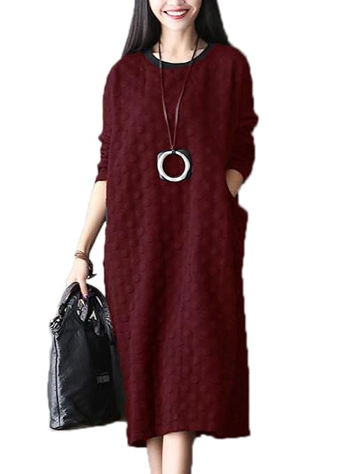 $22.99 Long Sleeve Loose Long Dress With Side Pockets Solid Mid-Calf Dresses