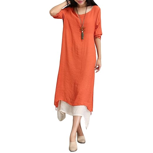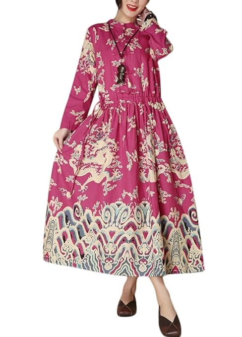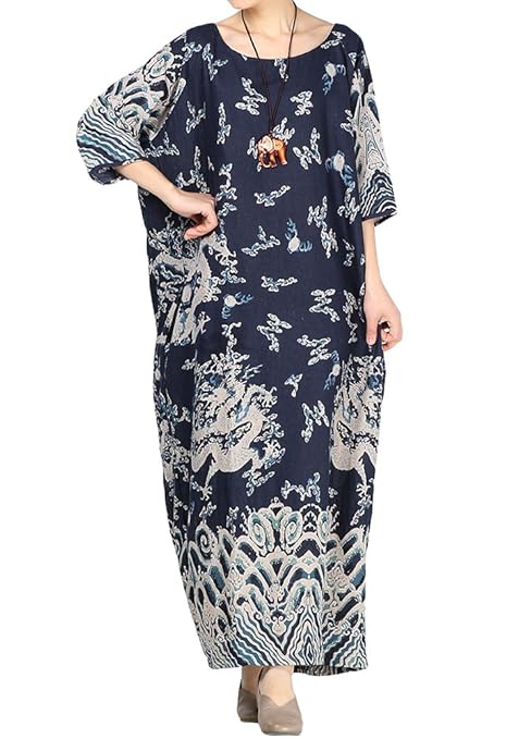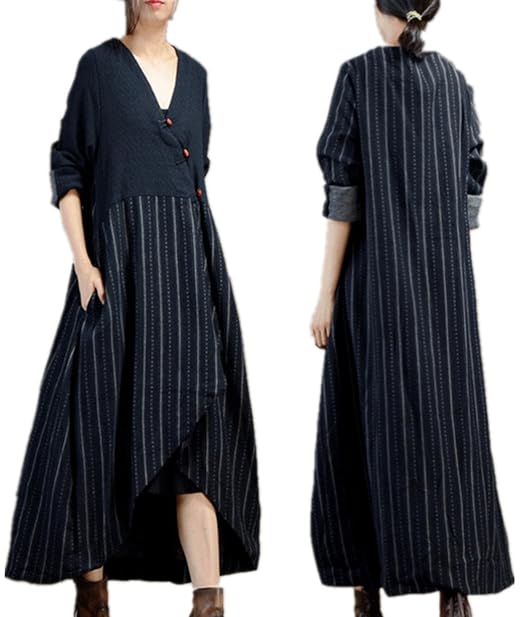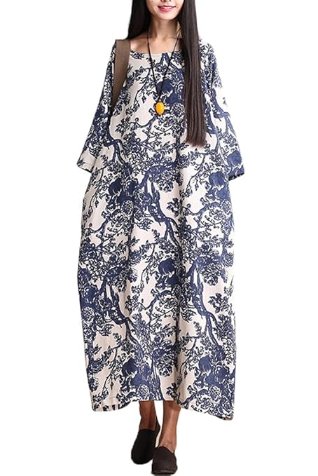 $16.99 Long Sleeve Loose Cotton Linen Boho Maxi Dress