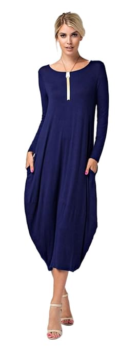 $25.49 Tabeez Women's Casual 3/4 Sleeve and Long Sleeve Loose Bubble Jersey Shift Cocoon Midi Dress (Made In The USA)