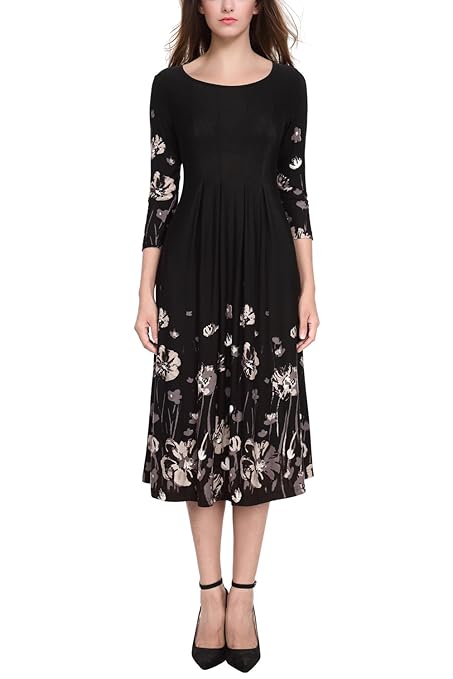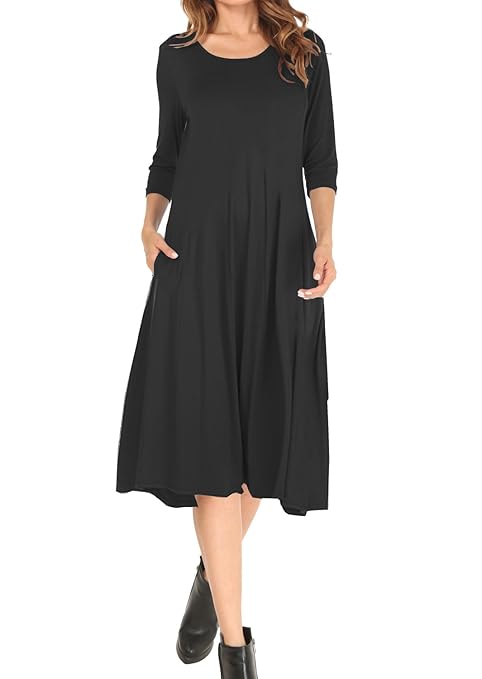 $19.99 MOLERANI Women's 3/4 Sleeve A-line and Flare Midi Long Dress With Pockets