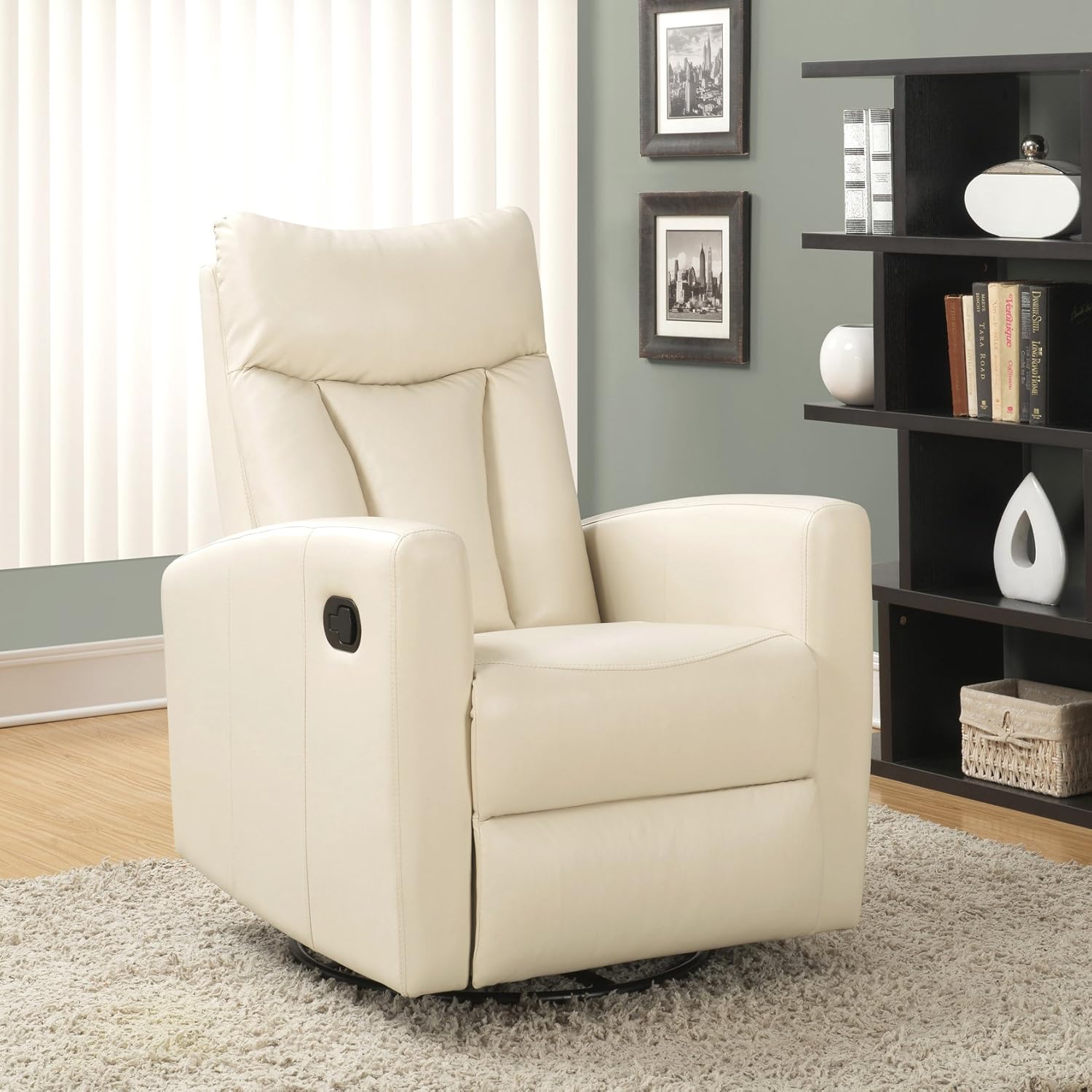 Ivory Bonded Leather Swivel Glider Recliner