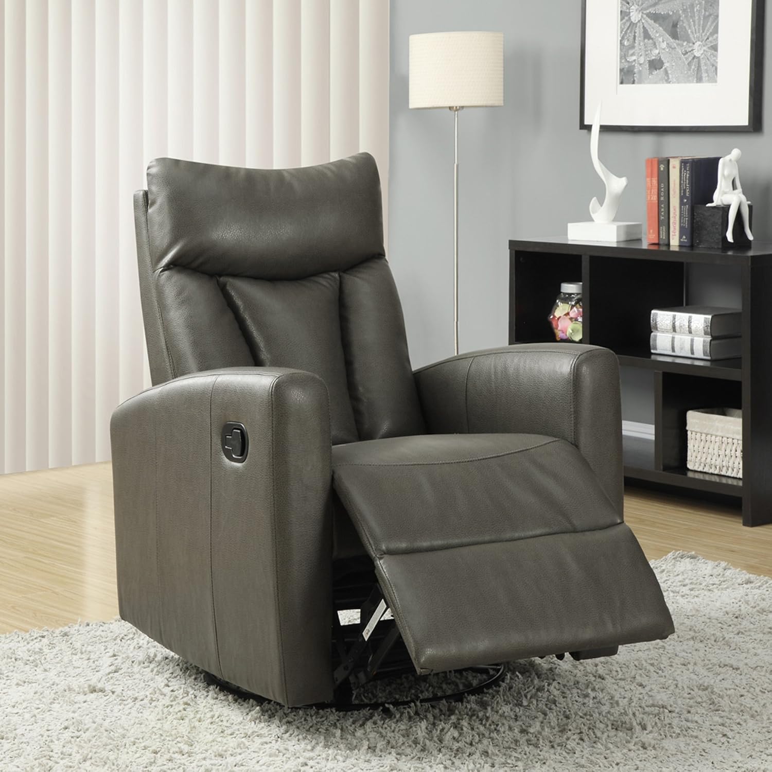 Charcoal Grey Bonded Leather Recliner Swivel Glider