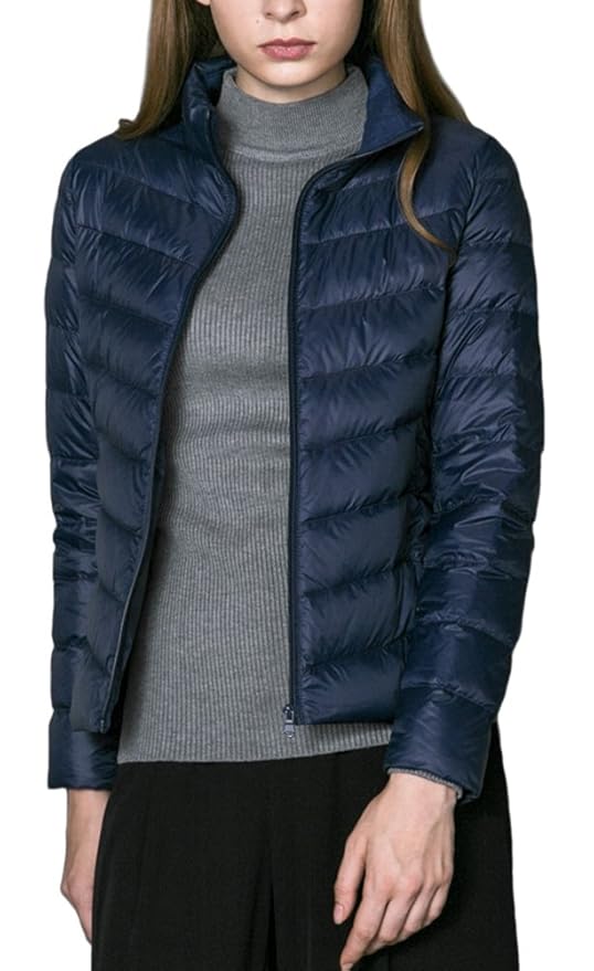 This down jacket is thin and light, yet incredibly warm. The innovative shell material is densely woven to keep rain out. A high, fitted collar plus elastic cuffs help keep drafts out. Slightly nipped in waist creates a visual slimming effect. Elastic band binding at bottom hem seals out cold and wind. Quilt-through design reduces pack size. Pack it compactly into the included carrying pouch, so you can take it with you wherever you go. It's suitable for outdoor and sportswear: golf, hiking, climbing, traveling, riding, driving, walking, casual and other sports