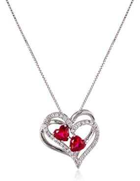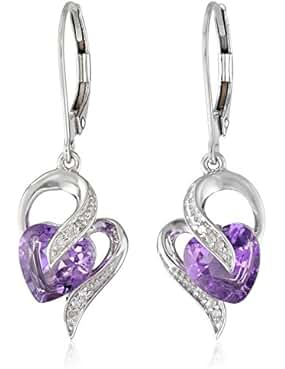 10k White Gold Gemstone and Diamond Accent Heart Drop Earrings
