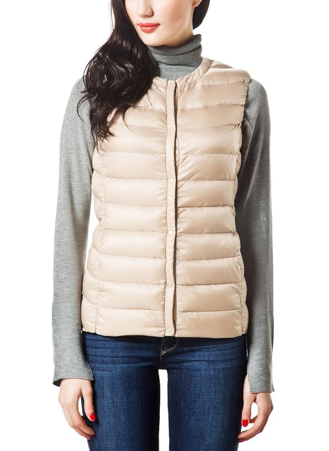 Ultralight down vest featuring sandwich quilting,standing collar,and zip-front closure