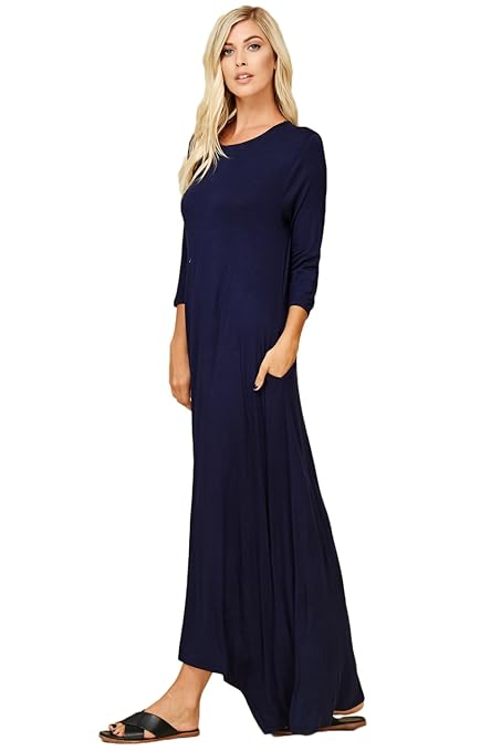 $24.95 Annabelle Women's 3/4 Sleeve Casual Loose Fit Maxi Dresses With Side Pockets
