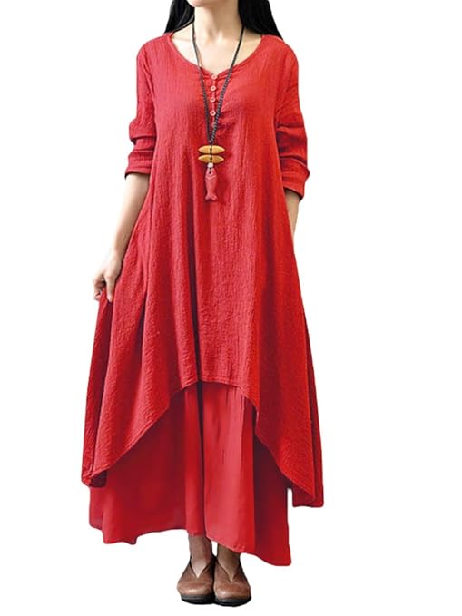 $20.99 $39.99 Romacci Women Boho Dress Casual Irregular Maxi Dresses Vintage Loose Long Sleeve Cotton Linen Dress,S-5XL