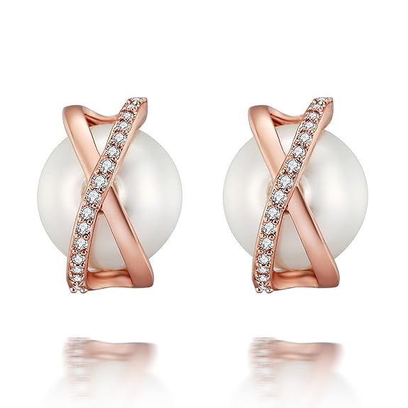 $10.99 $16.99 Caperci Rose Gold Plated Cubic Zirconia and Pearl Criss Cross Stud Earrings for Women